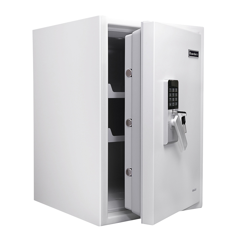 Contents are safeguarded by seven solid bolts, pry resistant hinges and steel casing